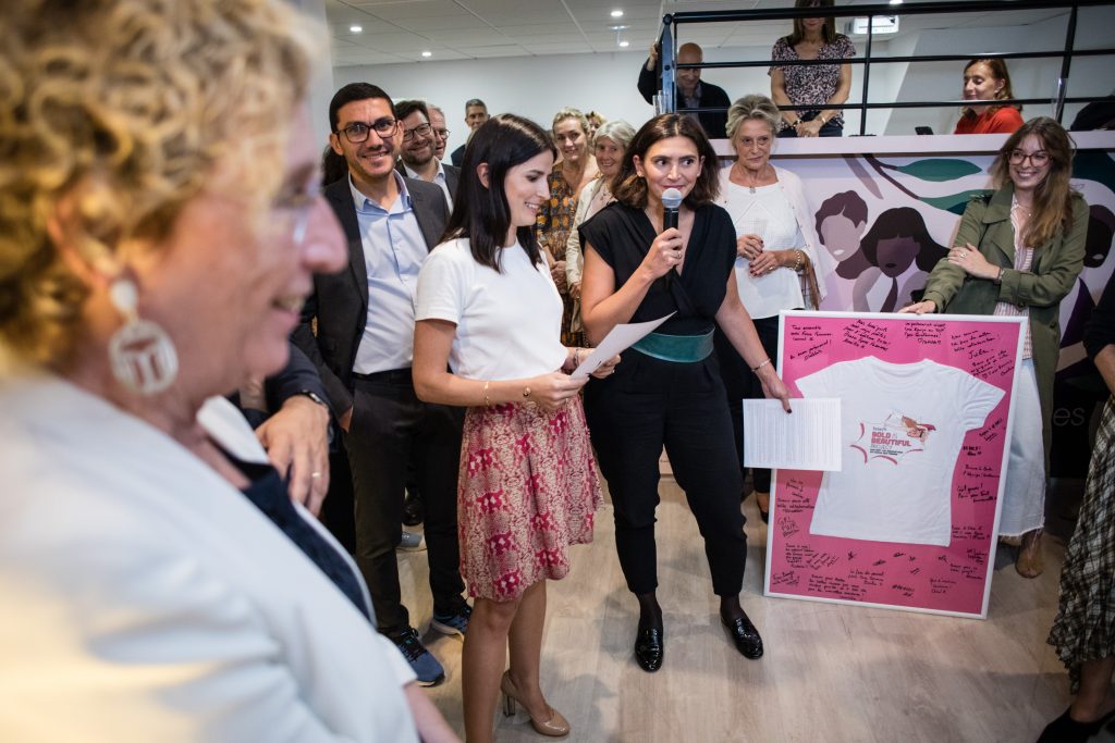 Chloé Renard et Mathilde Meunier ont remis à Force Femmes un chèque de plus de 360.000€ au nom de Benefit Cosmetics et de toutes ses clientes pour continuer de soutenir les programmes d’aide à l’emploi des femmes de plus de 45 ans en France.